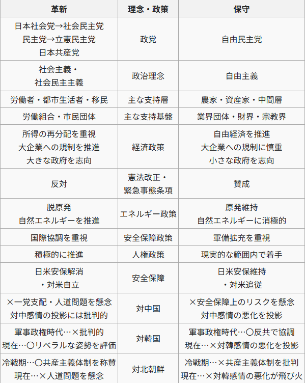 現代日本の保守派、革新派は?
